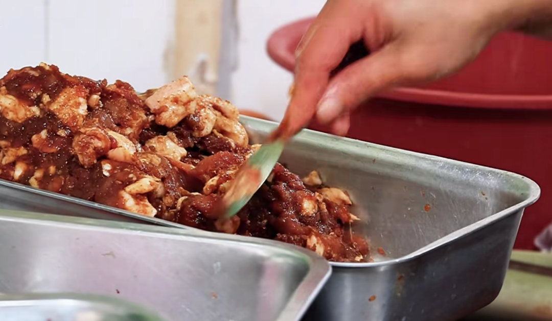 烟台灌香肠主打一个“较真”,选料必须是新鲜猪前肘或脊背肉,肥瘦比例严格拿捏在二八或三七,多一分腻少一分柴,手工切出两厘米见方的肉块,嚼头直接秒杀机器绞肉。调料更是“祖传秘方内卷现场”,二十余种香料磨粉调配,加高度白酒去腥增香,白糖中和咸度,五香、玫瑰甜口各显神通。